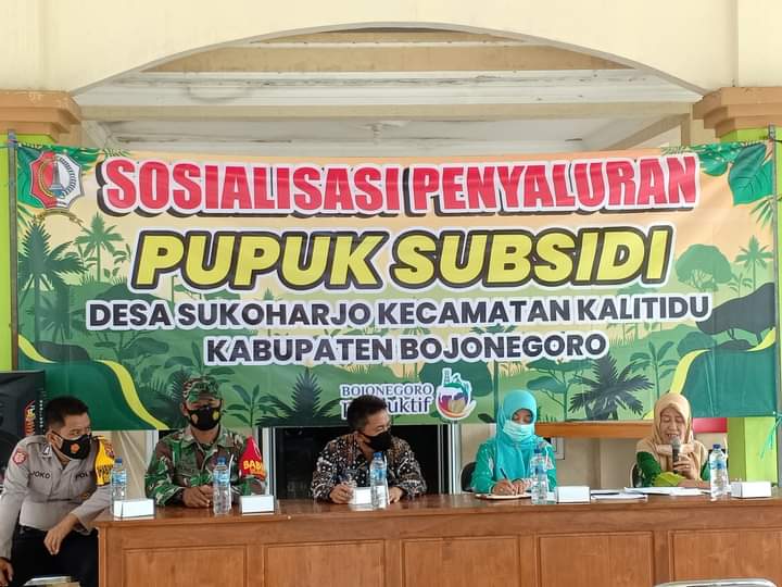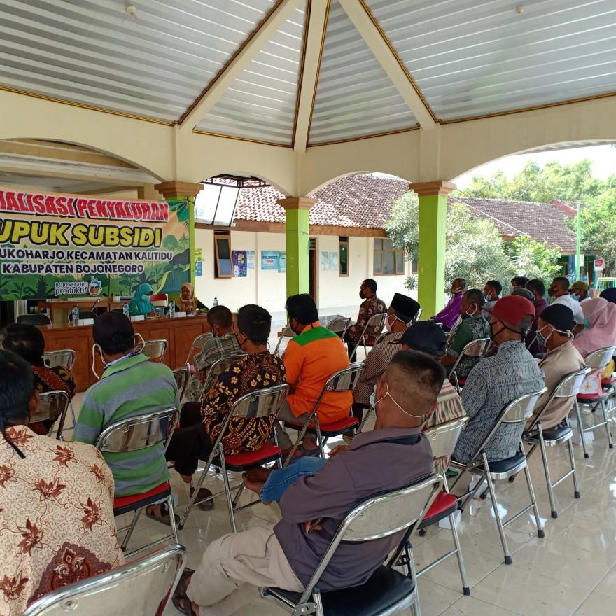 Melalui Pemerintah Desa Sukoharjo bersama PPL dan Kelompok Tani (Poktan) mengadakan Sosialisasi Penyaluran Pupuk Subsidi dan di agendakan sekolah lapangan khusus bagi petani program dari Exxon Mobil Cepu Ltd.